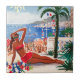 Vintage French and European Travel Advertisements - Beach, village, people, blue sea and sky illustration