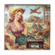 Vintage Country Girl Illustration Ceramic Tile