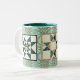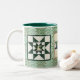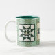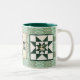 Snuggle under your vintage coverlet or quilt with a mug of hot chocolate and a good book while winter winds and snow blow outside. You may also want to fill the mug with your favorite tea bags, hot chocolate mix, candies, or even small sewing tools and supplies, to give to your quilting friends. The coverlet design in the background was scanned from a very old table cover that was woven in the pattern of an antique coverlet. The quilt designs were scanned from quilted potholders created by my very talented mother.