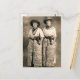 Two ladies dressed up in cowboy gear pose for the photographer in this reproduction vintage postcard