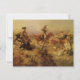 Jerked Down (1907) by CM Russell is a vintage fine art American West painting. Cowboys lassoing cows and one cowboy is falling with his horse. The men are cattle rustlers in the desert prairies of the Southwest.