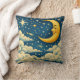 Vintage Crescent Moon Night Sky Throw Pillow