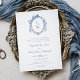 Vintage Crest Monogram Botanical Blue Wedding Invitation