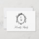 This Vintage Crest Monogram Botanical Formal Wedding RSVP card in classic black and white features an oval monogram crest trimmed with botanical vines of foliage, and elegant script calligraphy.