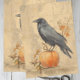 This moody vintage tissue paper features a hand-painted crow perched beside a pumpkin with rustic autumn foliage. The muted tones and textured background create a timeless Halloween aesthetic, perfect for adding a gothic farmhouse touch to seasonal projects. Ideal for gift wrapping, party favors, decoupage, junk journals, or craft projects that need a spooky yet elegant look.