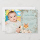 A thank you from your one year old son for a first birthday gift in vintage style and add a favorite photo too! This design has a cute fox in blue neck tie peaking out from behind cream florals and leaves on a powder green background to the right hand side, and simply change the sample photo on the left with your own - one of portrait orientation will work best. You can easily personalise the text to your own details. You can also change the fonts and text colors if you wish via the Click to Customize Further option as well as the coordinating green background on the back.