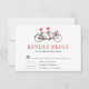 Elegant RSVP card featuring a beautiful tandem bicycle with two red hearts.