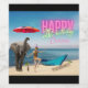 Fun and funky birthday card for a 21st birthday features vintage dancer photo cutout with elephant and mouse carrying parasols, neon "Happy 21st Birthday" text on a blue ocean sky background. Personalize with birthday girl's name or other special message in pink text