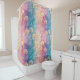 Vintage dandelion abstract pattern shower curtain featuring delicate seed heads layered over rich teal, pink, and muted purple watercolor textures. Dreamy and artistic with an ethereal mixed-media aesthetic, this seamless design is ideal for botanical art lovers, boho style fans, nature enthusiasts, and vintage-inspired decor admirers.