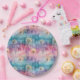 Vintage dandelion abstract pattern paper plate featuring delicate seed heads layered over rich teal, pink, and muted purple watercolor textures. Dreamy and artistic with an ethereal mixed-media aesthetic, this seamless design is ideal for botanical art lovers, boho style fans, nature enthusiasts, and vintage-inspired decor admirers.