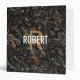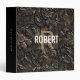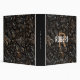 Modern brown 3 ring binder with a gold monogram and white typography on a tooled faux leather background. Personalize with your name, initial on the cover and text on the spine.