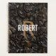 Modern brown planner with a gold monogram and white typography on a tooled faux leather background. Personalize with your name, initial on the cover and text on the spine.
