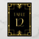This elegant vintage-inspired wedding table number card features a real gold foil geometric deco border on a black background. The word "table" appears in decorative gold-colored 1920s-style font. The back of the card is solid black. (Edit the table number separately for each individual card.)