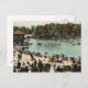 Vintage postcard showing Delaware Park in Buffalo, New York in 1900 complete with bandstand, people strolling along the lake shore, and boaters enjoying the summer day.