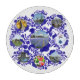Vintage Delft Blue Delftware Holland Pattern style Round Cheese Cutting Board. Beautiful vintage old Delft Blue style pattern kitchen cutting board with 9 fully customizable typical Dutch pictures, change and/ or add your own images! Typical Holland images are: flowers field and windmill landscape, Zaanse Schans windmills, Amsterdam cityscape, tasty Dutch snack bitterbal with Dutch flag, sailing boat, tulips flower bouquet, parked blue bicycle, grazing cow and Dutch wooden shoes (clogs). This unique Holland souvenir kitchen gift is fully customizable, add your texts and images!