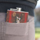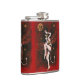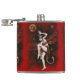 This flask is illustrated with a vintage Gothic devil lady dancer on a red background.