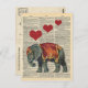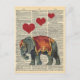 Vintage Dictionary Art Circus Elephant Love Postcard