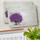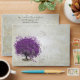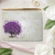 Whimsical Magical Tree of Love Purple Heart Leaf Tree on Tea Stained Warm Silver Toned Metallic Paper with an Overlay of Antique Sheet Music and some cute little swirly designs to enhance the roots of love on this unique woodland wedding invitation...