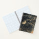 Vintage distressed sun eclipse moon night sky clouds drawing etching on textured background. Choose from sketchbook, bullet journal, checklist, graph paper, recipe book, or lines in various widths and colors. Also choose a spine color to further customize your notebook look.