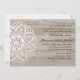 Plain white envelopes are included with paper invitations and will come to fit the invitation size you select. If you don’t need the envelopes, you may choose to not receive them by selecting the dropdown below "Envelopes" and choosing "None." If you’d like to have a design on your envelopes, you can browse all of these available envelopes to find the design that complements your Vintage Doily Barn Wood Wedding Invitation.