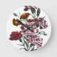 Vintage Drawing: Flemish Pink Flowers Round Clock