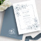 Plain white envelopes are included with paper invitations and will come to fit the invitation size you select. If you don’t need the envelopes, you may choose to not receive them by selecting the dropdown below "Envelopes" and choosing "None." If you’d like to have a design on your envelopes, you can browse all of these available envelopes to find the design that complements your Vintage Dusty Blue Wedding Invitation.