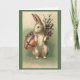 The Easter Bunny holds a ribbon wrapped rose colored egg and a willow sprig in this vintage fine art image. The green border sets the image off nicely. Customize the inside text as you please.
