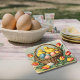 Cute old-fashioned Easter chicks sitting in an egg-filled basket with vibrant tulips all around. These paper coasters provide just the right amount of nostalgia to your Easter table this spring.