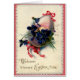 Victorian postcard for Easter with an illustrated egg with purple violets and pink ribbon.