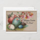 Pretty, vintage picture of Easter eggs and flowers is featured on this postcard. With greeting, "Happy Easter To You", this makes a great postcard to send to family and friends.