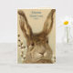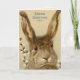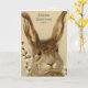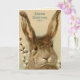 Vintage illustration of a large brown rabbit with the words "Easter Greetings" in blue handwritten text at the top. Blank interior.