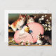 Vintage Easter Greetings: Chick hatching from egg with a trio of adorable cats looking on.