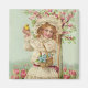 This cute magnet features a vintage image of a young girl, holding an Easter basket and a baby chick.