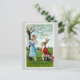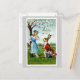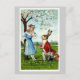This is a Vintage style Easter card, printed onto a modern postcard. The beautiful girl is having a conversation with the gentlemanly Easter Bunny. Spectacular color.