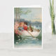 Vintage young couple in egg shell boat with bunny oarsman! Beautifully romantic Victorian Easter greeting card!