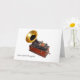 The Edison Cylinder Phonograph, invented by Thomas Edison in 1877, used wax cylinders called "records" to play music during the time period of the 1880s to around 1915. Wax cylinders were replaced by disc-shaped records and were played on a different machine. Card is blank inside for your handwritten message.