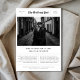 Capture the magic of your love story with a black-and-white design that feels both editorial and timeless. Featuring a romantic urban street photo layout, this digital save-the-date combines vintage newspaper style with modern, elegant typography—perfect for couples who want something truly unique.