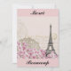 This card features a vintage drawing of the Eiffel Tower in Paris, France with pink flowers. The card reads "Merci beaucoup", or "thank you very much" in French.