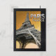 The Eiffel Tower in Paris France, done with vintage feel with old paper background. Scratches and stains visible throughout postcard.