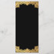 This elegant wedding menu, with a vintage air, has on both sides golden baroque decorations on the upper and lower borders, on black background. The title "Menu" and the subtitles are written in a calligraphic script. All text can be personalized and has a golden color similar to the golden borders.