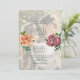 Elegant, modern, moody romantic, vintage emerald green gold and pink floral wedding invitation with photo rope heart, watercolor peach pink rose flowers and simple calligraphy script.