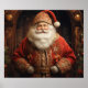 Vintage Elegant Santa Claus Red Brocade Suit & Hat Poster