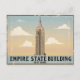 This retro postcard captures the majestic Empire State Building, a quintessential New York City landmark, in its vintage charm. The postcard features the classic skyscraper’s towering presence against a historical city skyline, reflecting the elegance of early 20th-century design. Ideal for collectors and fans of iconic architecture, this postcard offers a nostalgic view of one of the most celebrated structures in the heart of New York City.