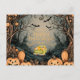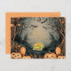 Celebrate Halloween with this beautifully designed vintage postcard featuring a charming scene of a classic truck carrying a load of pumpkins. Surrounded by intricately detailed spooky trees, grinning jack-o'-lanterns, and fluttering bats, this postcard captures the nostalgic essence of Halloween. Perfect for sending warm Halloween greetings to friends and family!