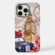A vintage London, England themed phone case that has old cogs, Big Ben, red roses, a old car and a background of newspapers