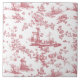 Vintage English Floral Toile de Jouy-Pink Ceramic Tile