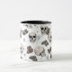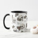 Hand-drawn in black ink, this elegant gothic Halloween mug features a beautiful pattern of skulls, roses and spiderwebs in cream and blush tones.