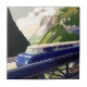 Retro Eurpoean Travel Advertisements - Yellow, Green Spring Color Tones Railroad Travel Ad - Train, Stone Bridge and Historical Village Illustration Painting