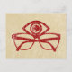A grunge vintage design featuring a red eye atop a pair of red eyeglasses. Great for eye doctors and ophthalmologists.