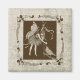 Pretty vintage illustration of fairy feeding a bird, sepia toned on distressed linen look background